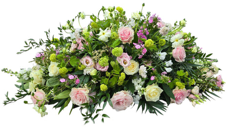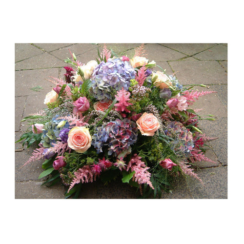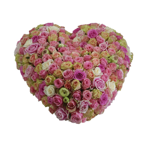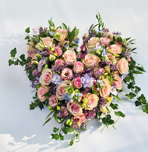 Blz. 36A | Hartvormig rouwstuk met pastelrozen