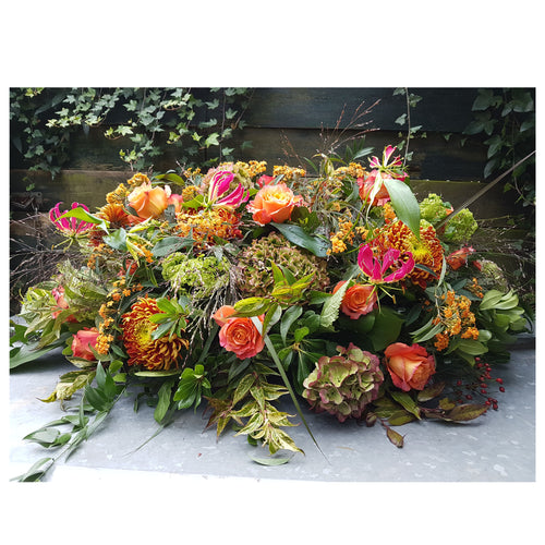 Blz. 40 | Ovaal afscheidsarrangement in herfsttinten