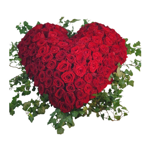 Blz. 36B | Hartvormig rouwstuk met rode rozen