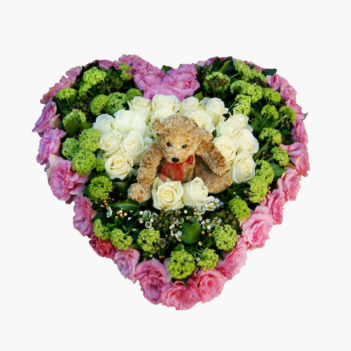 Blz. 36E | Hartvormig rouwstuk roze groen met beertje